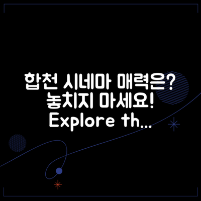 합천 시네마에서 어떤 영화를 봐야 할지 고민이신가요? 요즘 세상이 복잡해지는 만큼, 좋은 영화 한 편이 주는 위로와 즐거움은 그 어떤 것과도 바꿀 수 없는 소중한 경험이죠. 그래서 오늘은 합천 시네마에서 꼭 놓치지 말아야 할 다섯 가지 필수 관람작을 소개해드릴게요!