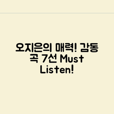 이러한 요소들은 오지은 가수의 음악이 대중에게 사랑받는 이유 중 하나입니다. 그녀의 곡들은 일상의 스트레스와 고단함을 잊게 해주는 동시에, 진정한 감정을 전달하는 힘이 있습니다.